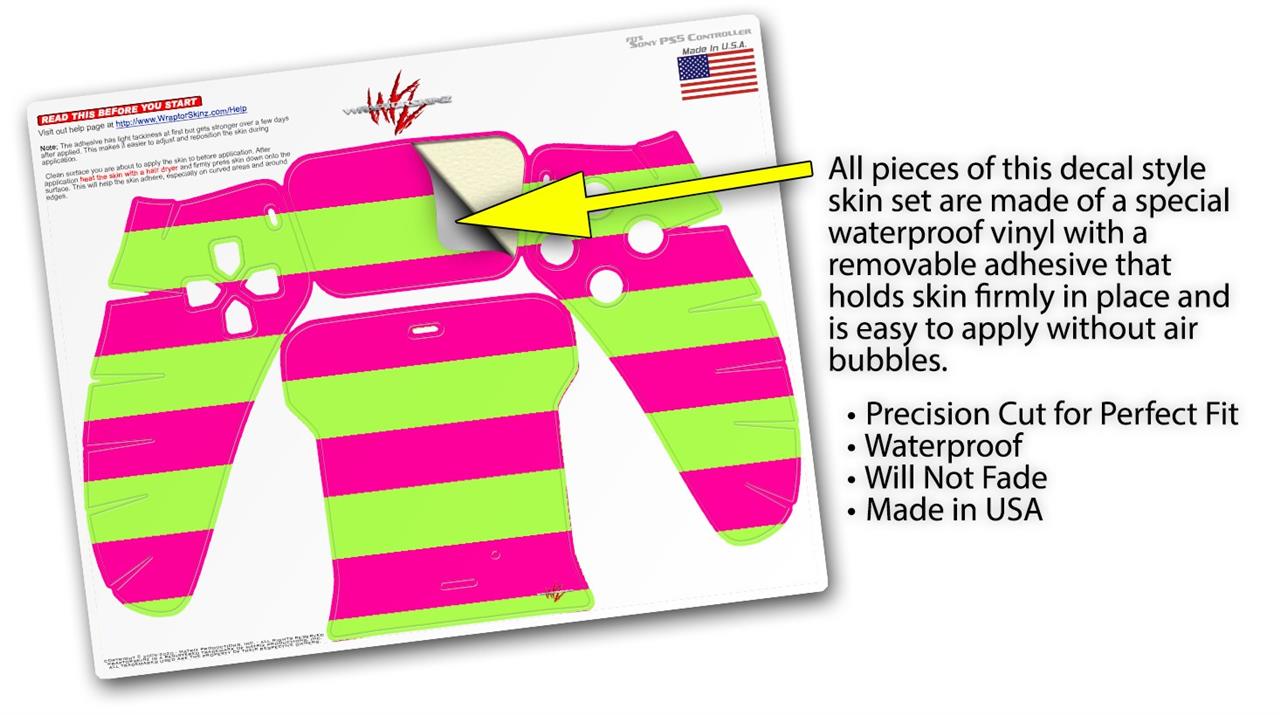 WraptorSkinz Skin Wrap compatible with the Sony PS5 DualSense Controller Psycho Stripes Neon Green and Hot Pink (CONTROLLER NOT INCLUDED)