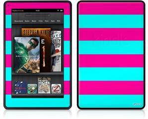 Amazon Kindle Fire (Original) Decal Style Skin - Psycho Stripes Neon Teal and Hot Pink