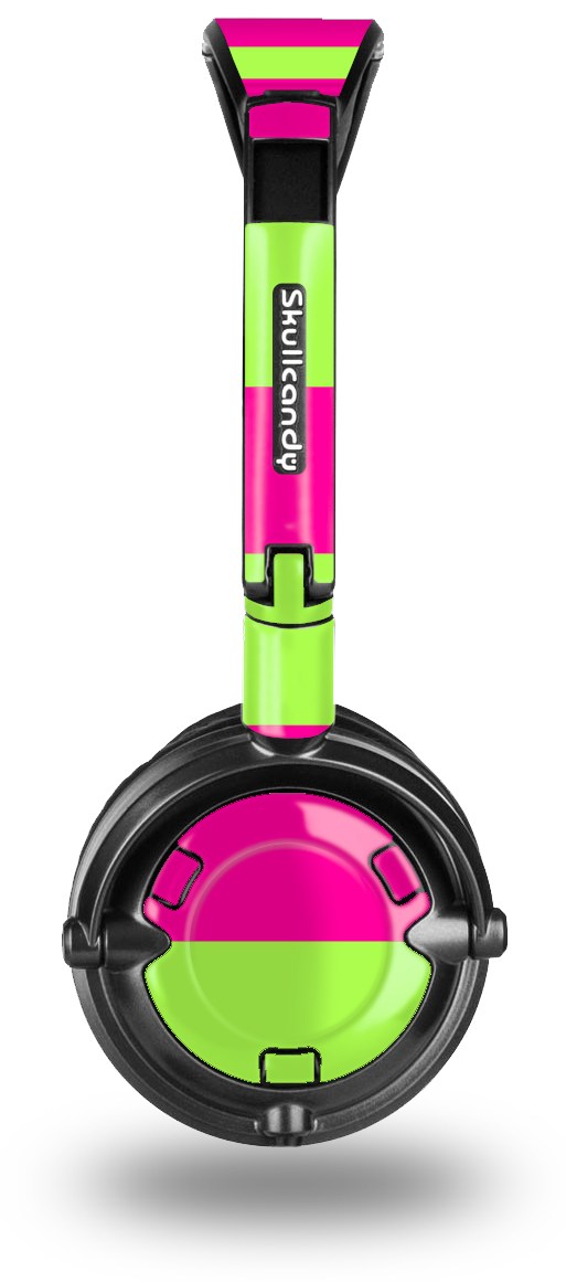 Psycho Stripes Neon Green and Hot Pink Decal Style Skin fits Skullcandy Lowrider Headphones (HEADPHONES SOLD SEPARATELY)