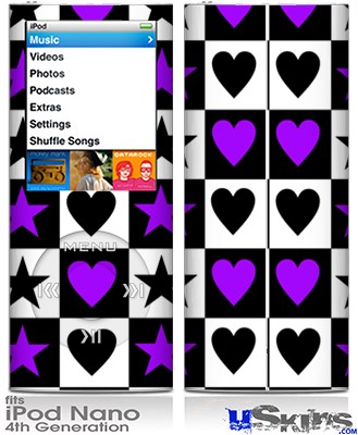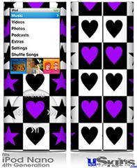 iPod Nano 4G Skin - Purple Hearts And Stars