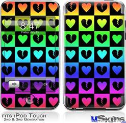 iPod Touch 2G & 3G Skin - Love Heart Checkers Rainbow