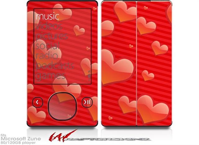 Glass Hearts Red - Decal Style skin fits Zune 80/120GB (ZUNE SOLD SEPARATELY)
