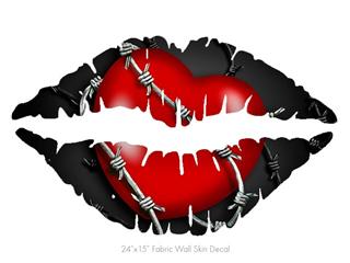 Barbwire Heart Red - Kissing Lips Fabric Wall Skin Decal measures 24x15 inches