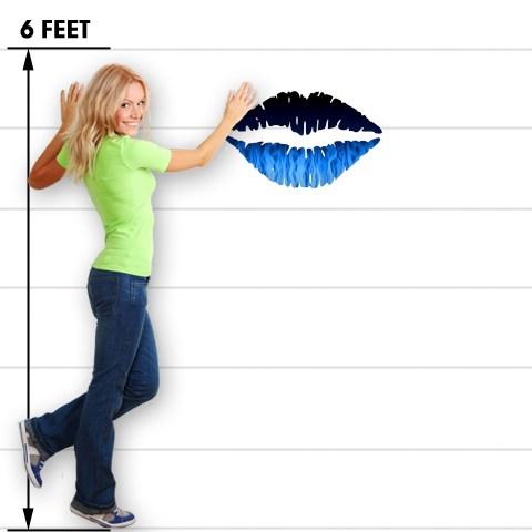Fire Flames Blue - Kissing Lips Fabric Wall Skin Decal measures 24x15 inches