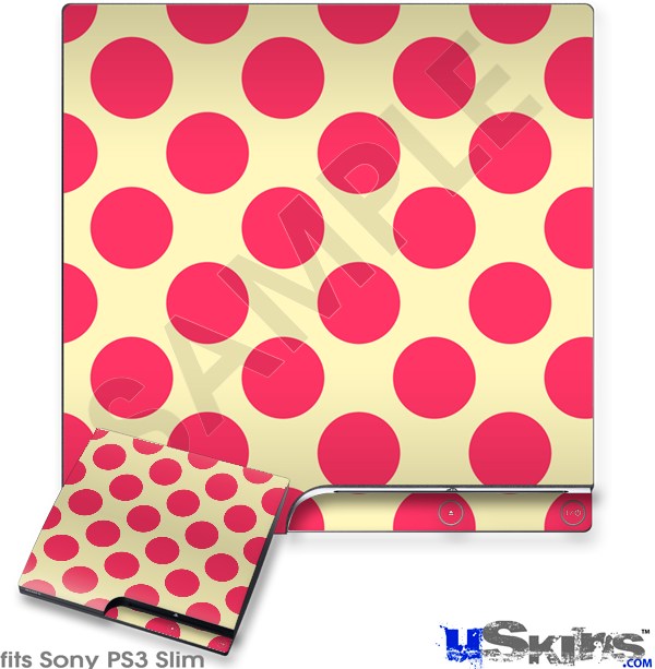 Decal Skin compatible with Sony PS3 Slim Kearas Polka Dots Pink On Cream