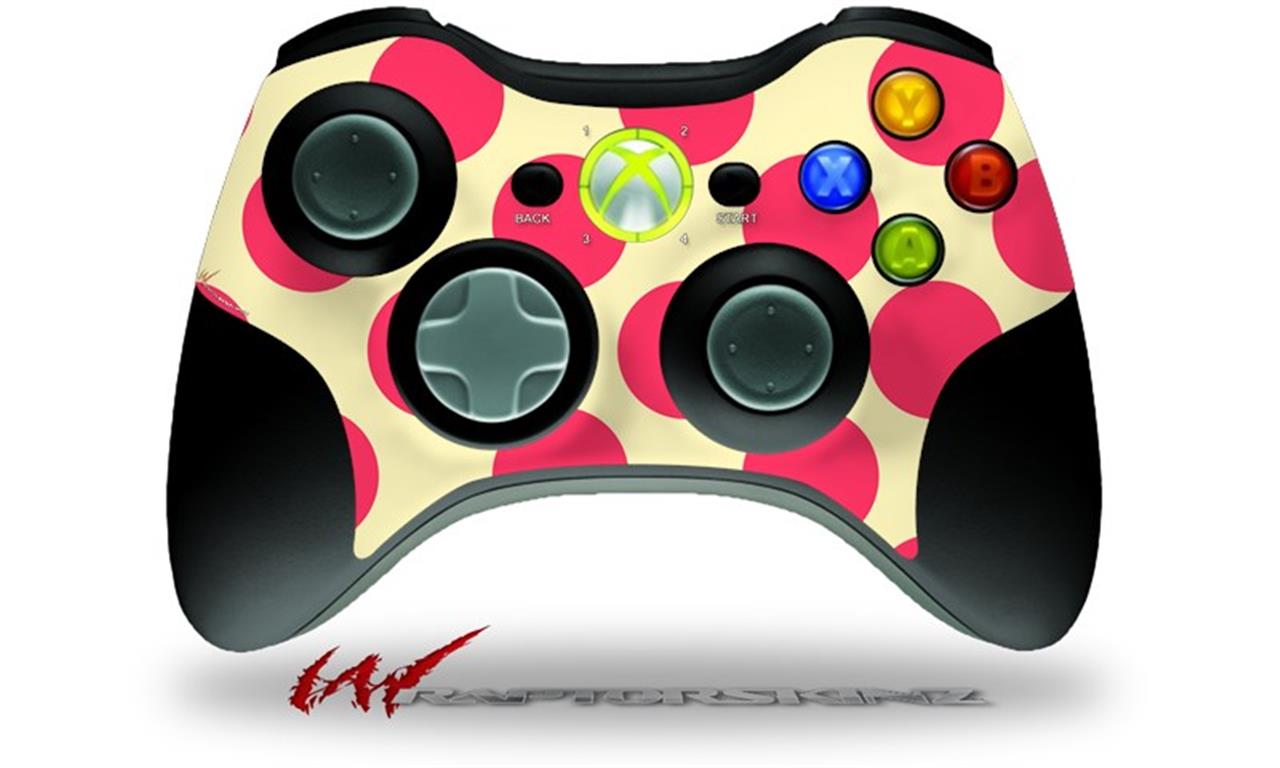 XBOX 360 Wireless Controller Decal Style Skin - Kearas Polka Dots Pink On Cream (CONTROLLER NOT INCLUDED)