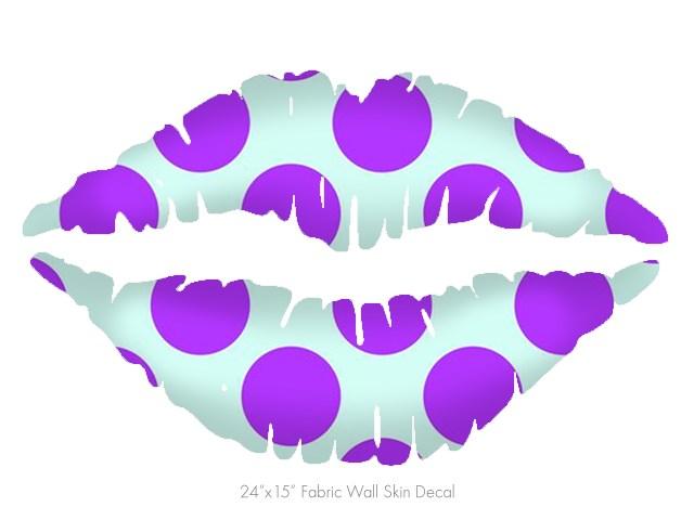 Kearas Polka Dots Purple And Blue - Kissing Lips Fabric Wall Skin Decal measures 24x15 inches