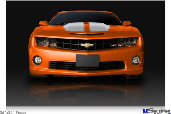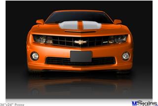 Poster 36"x24" - 2010 Chevy Camaro Orange - White Stripes on Black