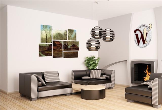 Vincent Van Gogh Farmhouses Among Trees - 7 Piece Fabric Peel and Stick Wall Skin Art (50x38 inches)