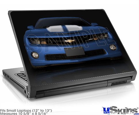 Laptop Skin (Small) - 2010 Chevy Camaro Aqua - White Stripes on Black