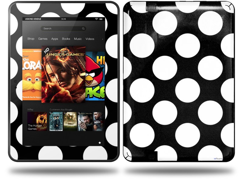 Kearas Polka Dots White On Black Decal Style Skin fits Amazon Kindle Fire HD 8.9 inch