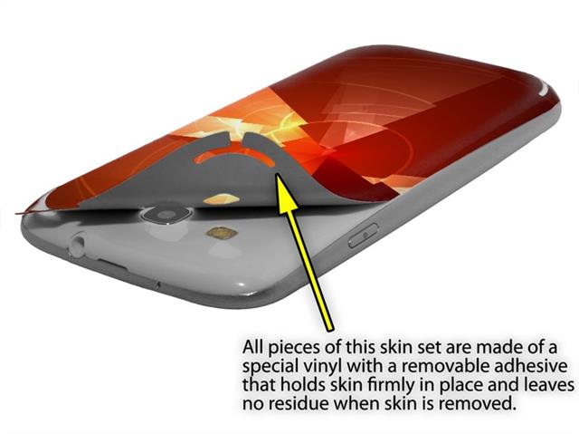 • Decal style vinyl skin covers front and back of Samsung Galaxy S III S3 phone.