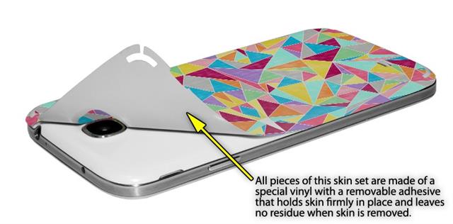 • Decal style vinyl skin covers front and back of Samsung Galaxy S4 phone.