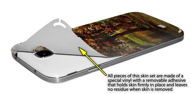 • Decal style vinyl skin covers front and back of Samsung Galaxy S4 phone.