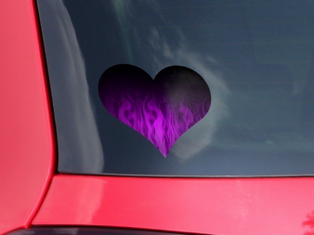 Fire Flames Purple - I Heart Love Car Window Decal 6.5 x 5.5 inches