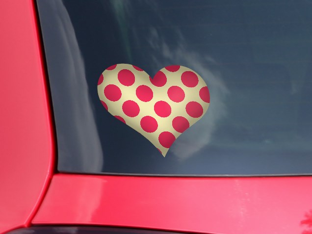 Kearas Polka Dots Pink On Cream - I Heart Love Car Window Decal 6.5 x 5.5 inches