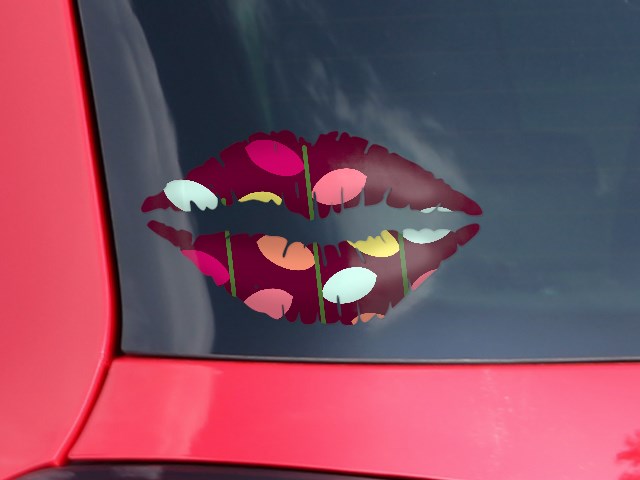 Lips Decal 9x5.5 Plain Leaves On Burgundy