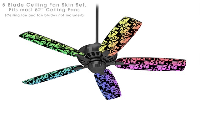 Skull Checker Rainbow - Ceiling Fan Skin Kit fits most 52 inch fans (FAN and BLADES SOLD SEPARATELY)