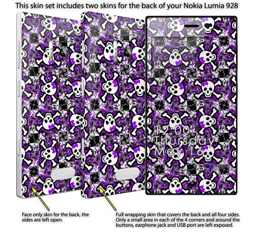 Splatter Girly Skull Purple - Decal Style Skin (fits Nokia Lumia 928)