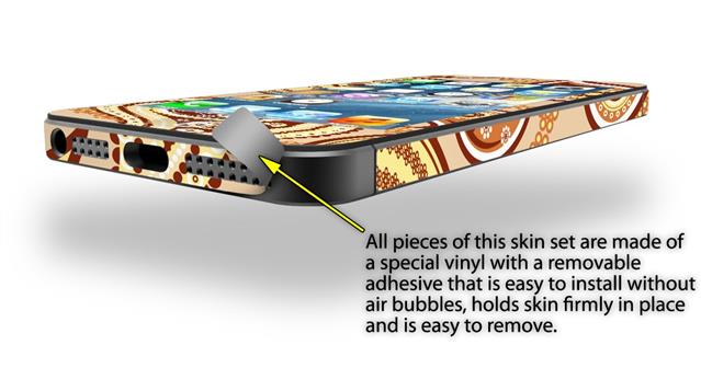 uSkins™ are self adhering vinyl skins that help prevent scratches and look great doing it. Unlike bulky silicon, plastic or metal cases and faceplates, uSkins are designed to be thin and very tough. uSkins are a composite of two layers of commercial grade materials. The bottom layer is a soft, flexible vinyl with a special removable adhesive that is easily positioned, applied without air bubbles, and effortlessly removed without leaving a sticky residue. Next we print the bottom layer with UV protected, fade resistant inks that deliver superb photo quality designs in vibrant colors. Finally we bond a professional grade laminate over the entire skin adding a glossy protective finish.
