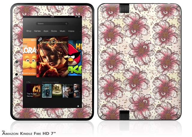 Flowers Pattern 23Decal Style Skin fits 2012 Amazon Kindle Fire HD 7 inch