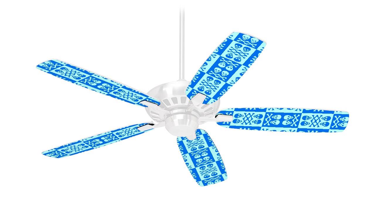 Skull And Crossbones Pattern Blue - Ceiling Fan Skin Kit fits most 42 inch fans (FAN and BLADES SOLD SEPARATELY)
