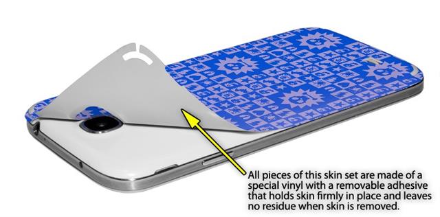 • Decal style vinyl skin covers front and back of Samsung Galaxy S4 phone.