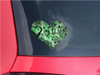 Scene Kid Sketches Green - I Heart Love Car Window Decal 6.5 x 5.5 inches