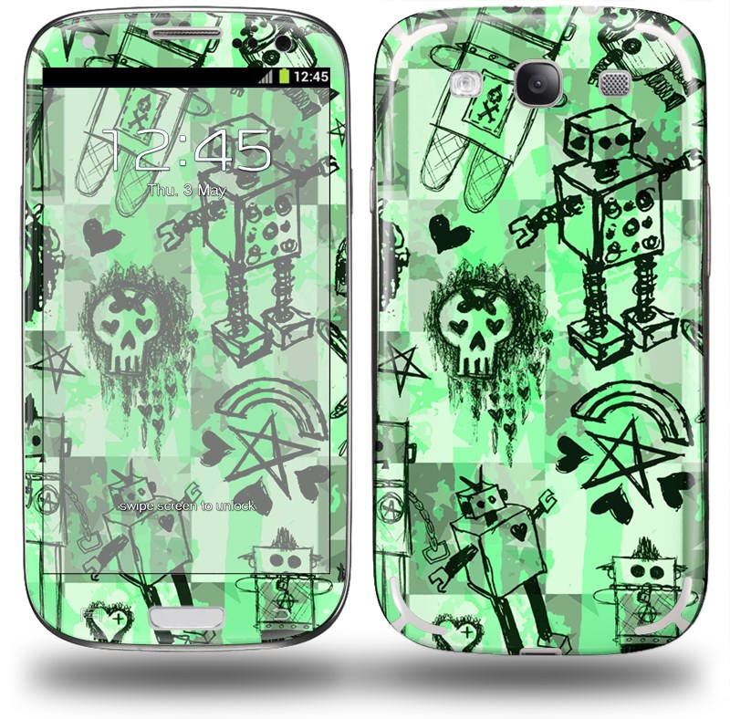 Scene Kid Sketches Green - Decal Style Skin (fits Samsung Galaxy S III S3)