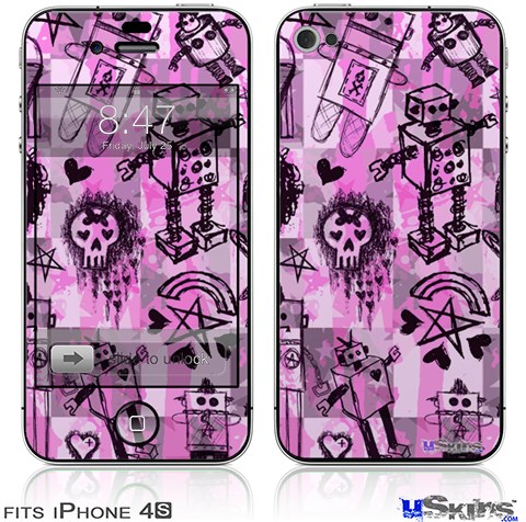 iPhone 4S Decal Style Vinyl Skin - Scene Kid Sketches Pink