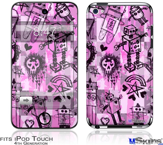 iPod Touch 4G Decal Style Vinyl Skin - Scene Kid Sketches Pink