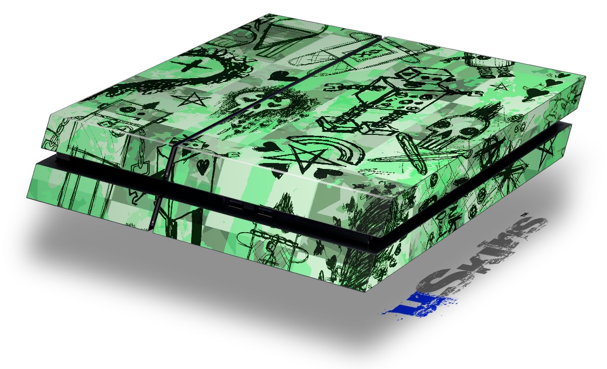 Vinyl Decal Skin Wrap compatible with Sony PlayStation 4 Original Console Scene Kid Sketches Green (PS4 NOT INCLUDED)