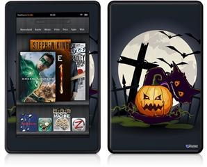 Amazon Kindle Fire (Original) Decal Style Skin - Halloween Jack O Lantern and Cemetery Kitty Cat