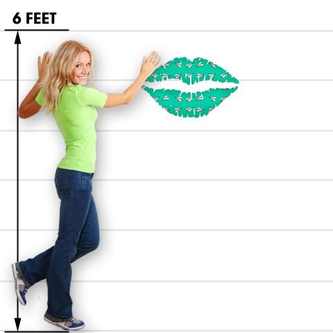 Paper Planes Turquoise - Kissing Lips Fabric Wall Skin Decal measures 24x15 inches
