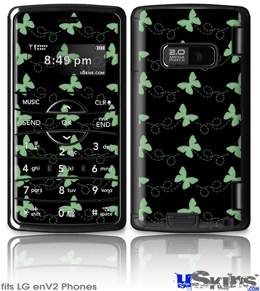LG enV2 Skin - Pastel Butterflies Green on Black