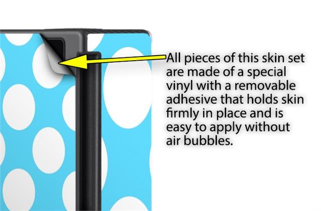 WraptoSkinz™ skins are superb photo quality designs and vibrant colors printed with special Eco-Friendly, fade resistant inks. Our skins are self-adhering flexible vinyl skins that helps prevent scratches. Made of composite, multi-layered commercial grade materials. The bottom layer is made with a special removable adhesive that is easily positioned and applied without air bubbles. We print your design on the bottom layer then bond a professional grade laminate over the entire skin adding a glossy protective finish.