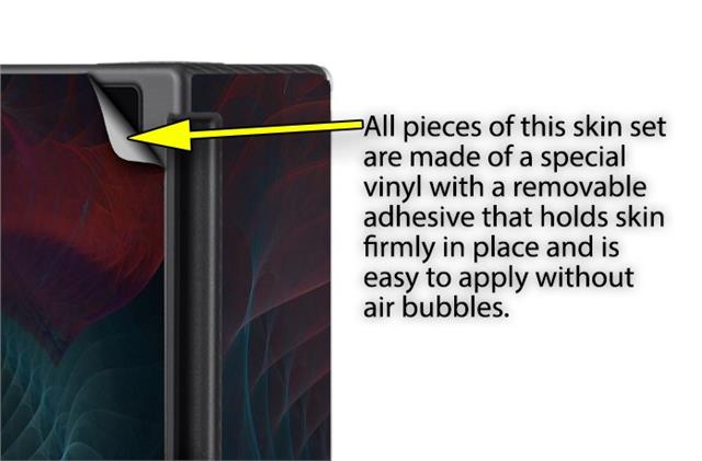 WraptoSkinz™ skins are superb photo quality designs and vibrant colors printed with special Eco-Friendly, fade resistant inks. Our skins are self-adhering flexible vinyl skins that helps prevent scratches. Made of composite, multi-layered commercial grade materials. The bottom layer is made with a special removable adhesive that is easily positioned and applied without air bubbles. We print your design on the bottom layer then bond a professional grade laminate over the entire skin adding a glossy protective finish.