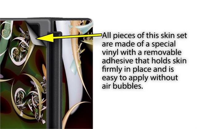 WraptoSkinz™ skins are superb photo quality designs and vibrant colors printed with special Eco-Friendly, fade resistant inks. Our skins are self-adhering flexible vinyl skins that helps prevent scratches. Made of composite, multi-layered commercial grade materials. The bottom layer is made with a special removable adhesive that is easily positioned and applied without air bubbles. We print your design on the bottom layer then bond a professional grade laminate over the entire skin adding a glossy protective finish.