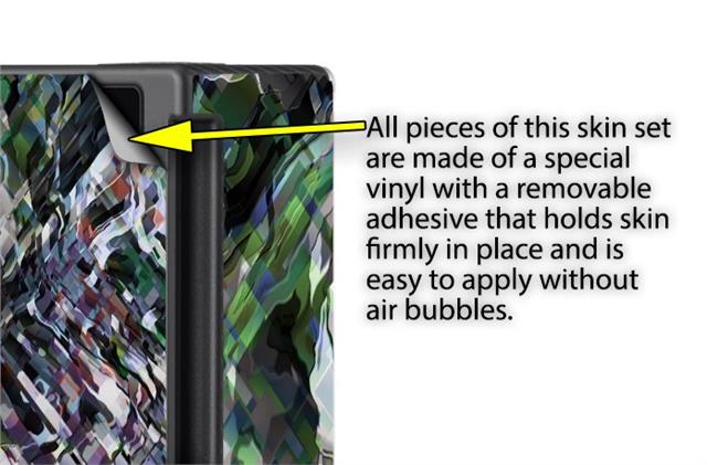 WraptoSkinz™ skins are superb photo quality designs and vibrant colors printed with special Eco-Friendly, fade resistant inks. Our skins are self-adhering flexible vinyl skins that helps prevent scratches. Made of composite, multi-layered commercial grade materials. The bottom layer is made with a special removable adhesive that is easily positioned and applied without air bubbles. We print your design on the bottom layer then bond a professional grade laminate over the entire skin adding a glossy protective finish.