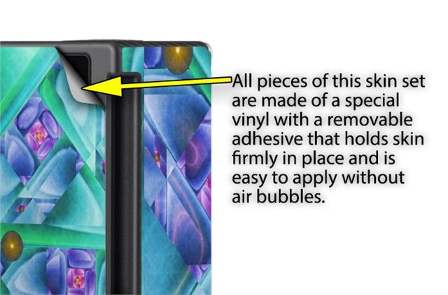 WraptoSkinz™ skins are superb photo quality designs and vibrant colors printed with special Eco-Friendly, fade resistant inks. Our skins are self-adhering flexible vinyl skins that helps prevent scratches. Made of composite, multi-layered commercial grade materials. The bottom layer is made with a special removable adhesive that is easily positioned and applied without air bubbles. We print your design on the bottom layer then bond a professional grade laminate over the entire skin adding a glossy protective finish.