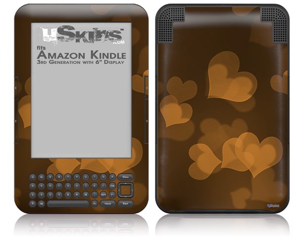 Bokeh Hearts Orange - Decal Style Skin fits Amazon Kindle 3 Keyboard (with 6 inch display)