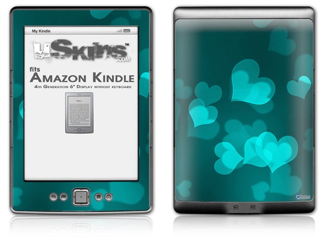 Bokeh Hearts Neon Teal - Decal Style Skin (fits 4th Gen Kindle with 6inch display and no keyboard)