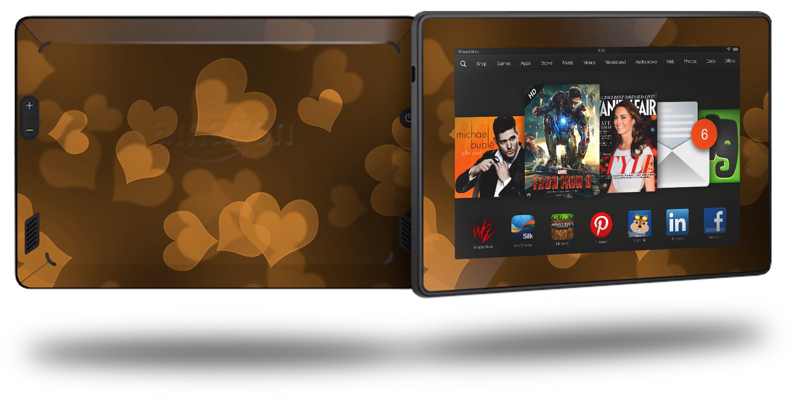 Bokeh Hearts Orange - Decal Style Skin fits 2013 Amazon Kindle Fire HD 7 inch