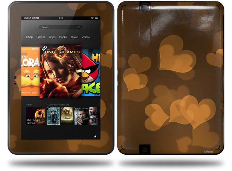 Bokeh Hearts Orange Decal Style Skin fits Amazon Kindle Fire HD 8.9 inch