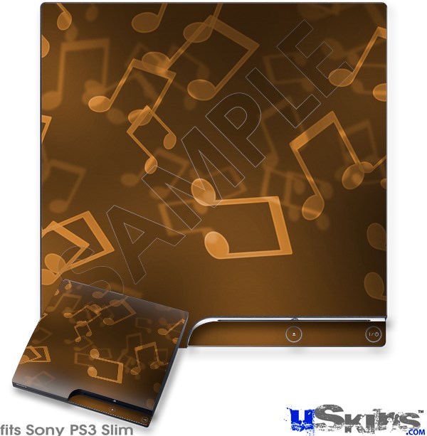 Decal Skin compatible with Sony PS3 Slim Bokeh Music Orange