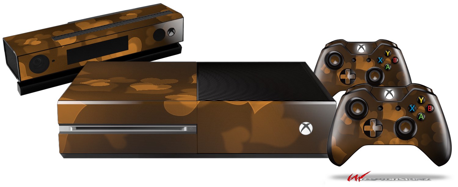 Bokeh Hearts Orange - Holiday Bundle Decal Style Skin fits XBOX One Console Original, Kinect and 2 Controllers (XBOX SYSTEM NOT INCLUDED)