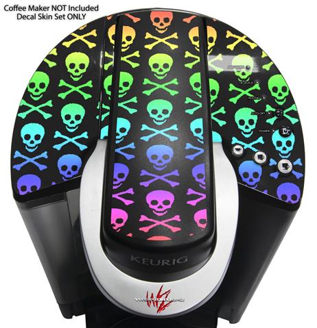 Decal Style Vinyl Skin compatible with Keurig K40 Elite Coffee Makers Skull and Crossbones Rainbow (KEURIG NOT INCLUDED)