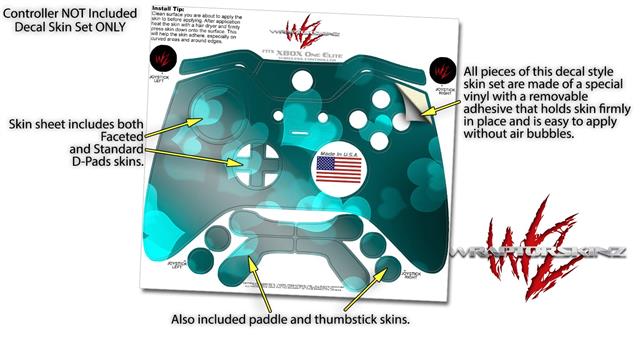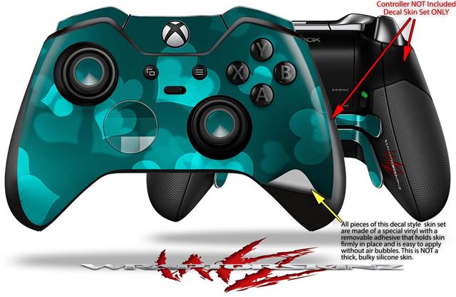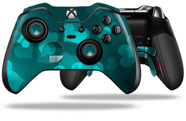 Bokeh Hearts Neon Teal - Decal Style Skin fits Microsoft XBOX One ELITE Wireless Controller