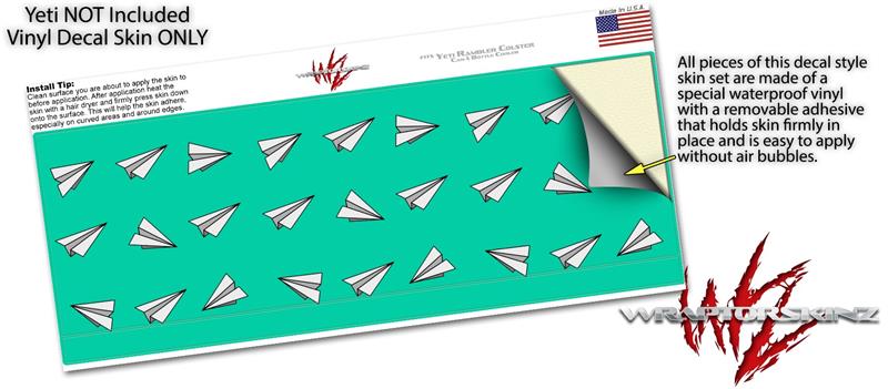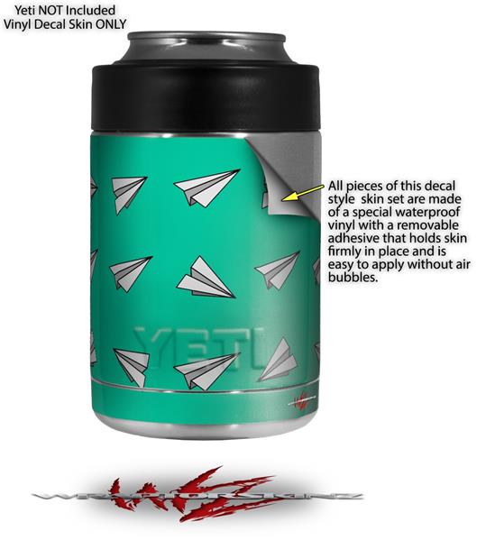 Skin Decal Wrap for Yeti Colster, Ozark Trail and RTIC Can Coolers - Paper Planes Turquoise (COOLER NOT INCLUDED)