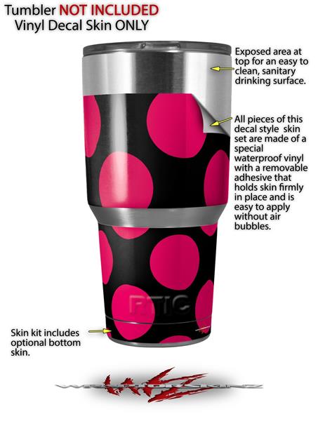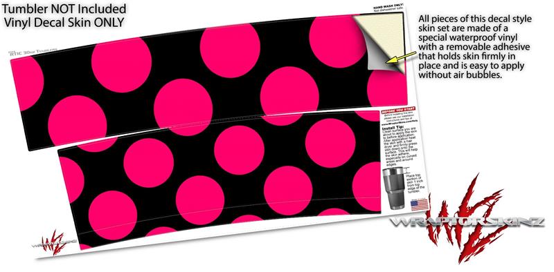 WraptorSkinz Skin Wrap compatible with RTIC 30oz ORIGINAL 2017 AND OLDER Tumblers Kearas Polka Dots Pink On Black (TUMBLER NOT INCLUDED)